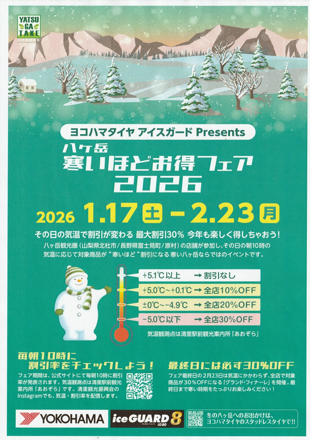 八ヶ岳 寒い程お得フェア 始まりました!!